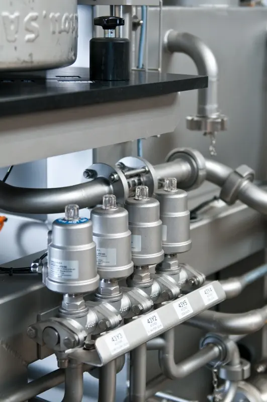 - Integrated detergent tank with pump, heating, level and temperature monitoring